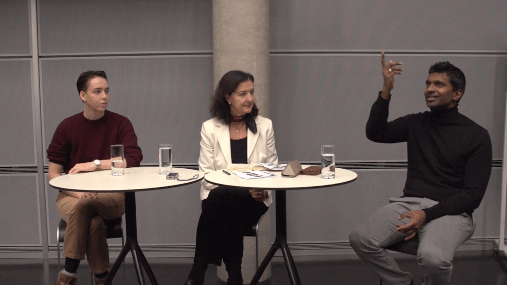 Sabine Coelsch-Foisner im Gespräch mit dem Regisseur Jérôme Junod und dem Rechtsphilosophen Stephan Kirste (Fachbereich Völkerrecht, Europarecht und Grundlagen des Rechts, Rechts- und Sozialphilosophie, Universität Salzburg)